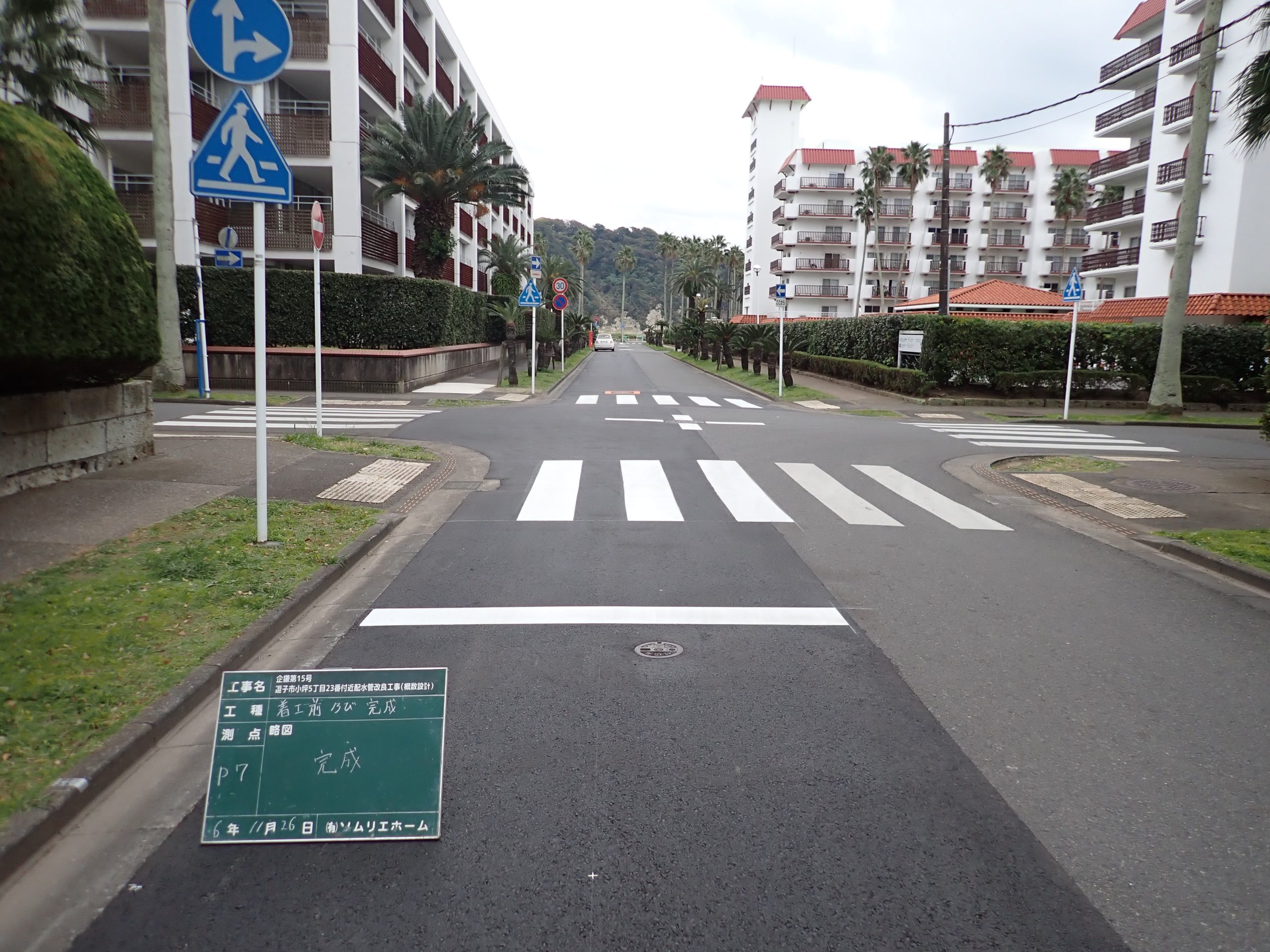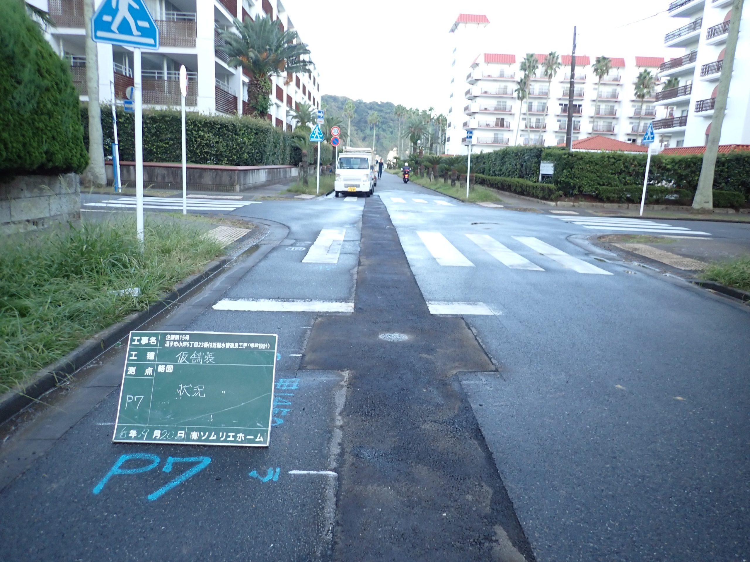 舗装工事までは、継ぎはぎだらけの道路面もきれいな仕上がりになっています。