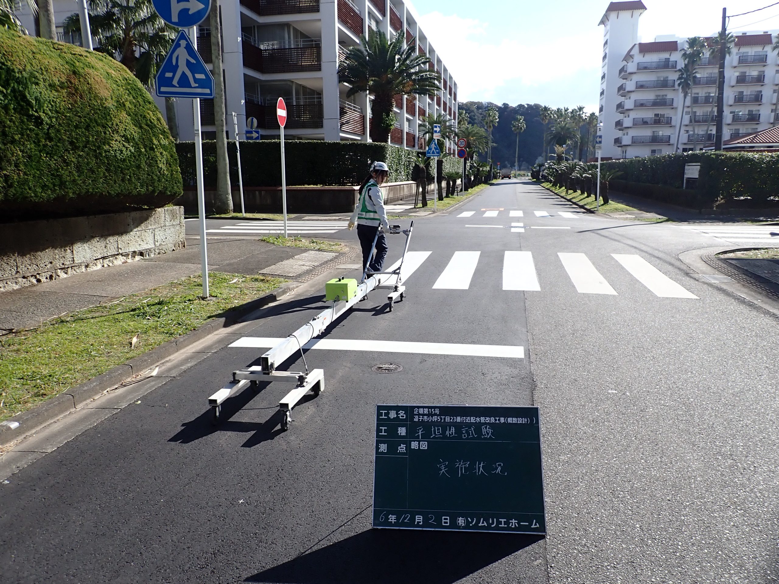 今回は、道路の平坦性を調べる試験を実施しました。