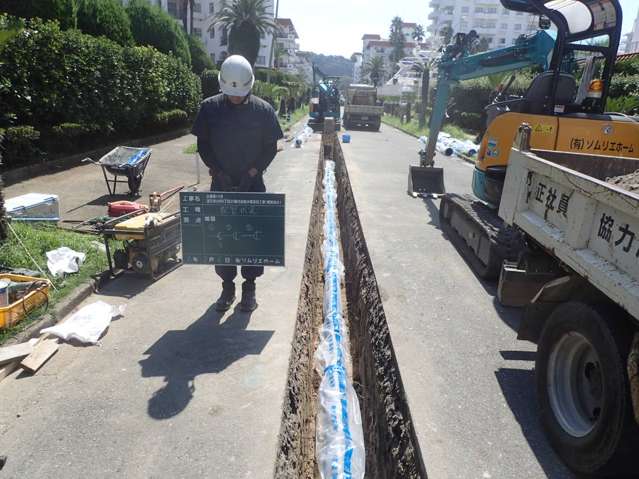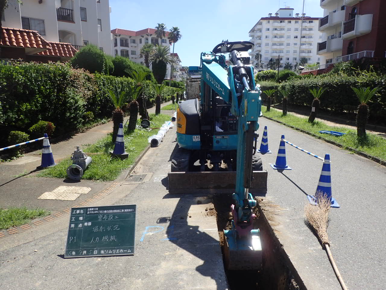 9月上旬から始まった新しい配水管の布設工事が一段落し、来週から既設管との連絡工事に入ります。