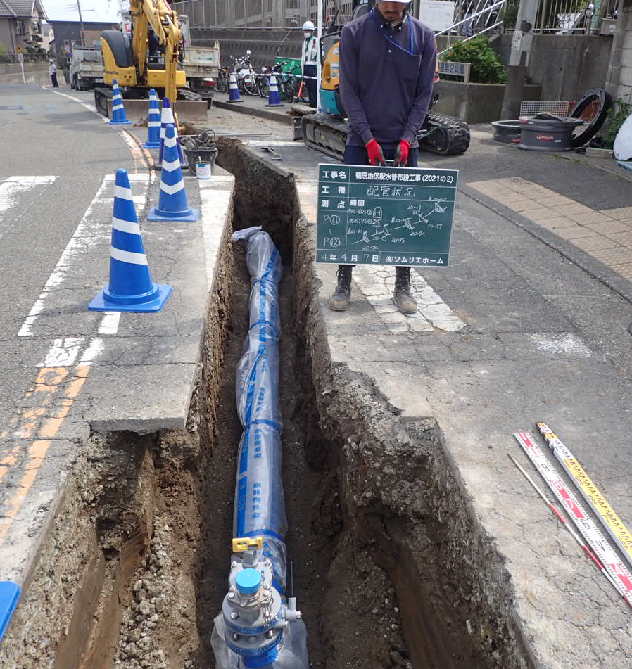 3月28日から4月18日の間で、配水管の布設工事が終了いたしました。